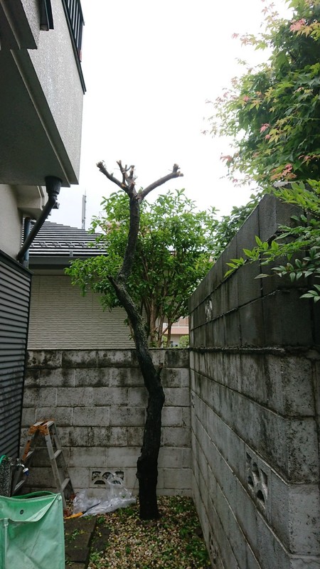生い茂っている枝葉を伐採して、幹だけを残した状態です。